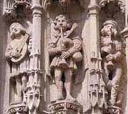statues du porche présentent des individus jouant de divers